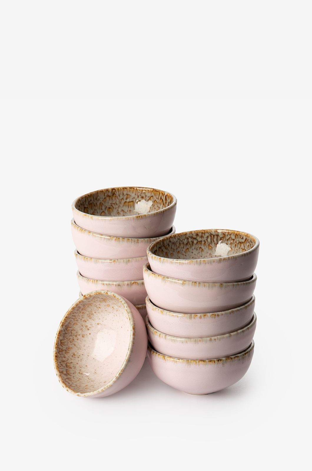 Set van 12 geglazuurde kommen van Sissy-Boy. De house of treasures kommen zijn gemaakt van keramiek en hebben een lichtroze kleur met groene details. De kleine kommen hebben een diameter van 11 cm zijn geschikt voor in de oven, magnetron en vaatwasser. Let op: online kan je dit artikel alleen in een set van 12 kopen. Wil je liever 1 stuk? Ga dan langs in één van onze winkels. Materiaal: 100% keramiek.