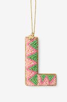 Lichtroze kersthanger van Sissy-Boy in de vorm van het initiaal L. De letter kersthanger is versierd met glazen kraaltjes op de voorkant en afgewerkt met een satijn look aan de achterkant. Materiaal: 100% polyester.