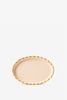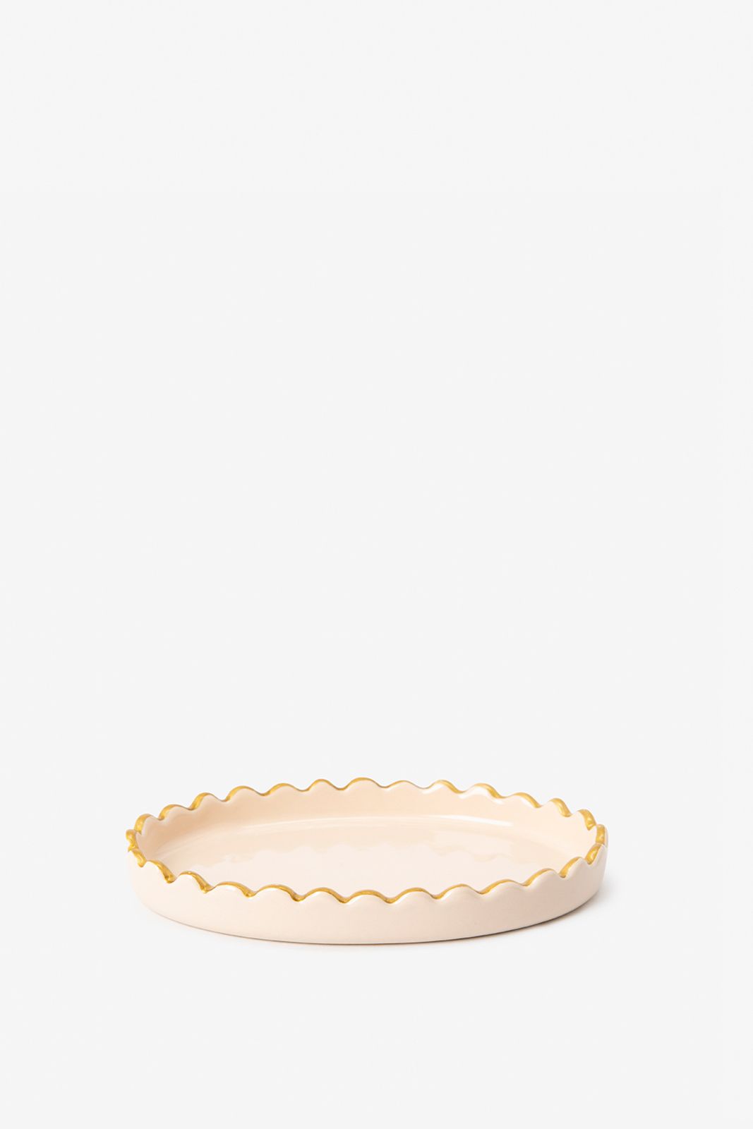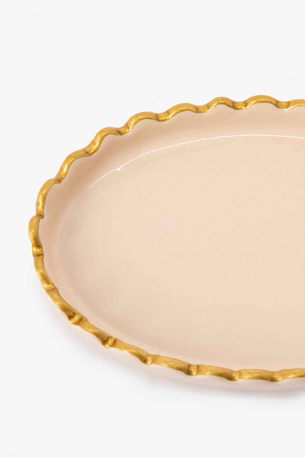 Lichtroze ruffled schaaltje van Sissy-Boy. Het schaaltje heeft een ovale vorm en een goudkleurige ruffle rand aan de bovenzijde. Afmetingen: 13,5 cm x 9 cm x 2 cm. Materiaal: 100% keramiek.