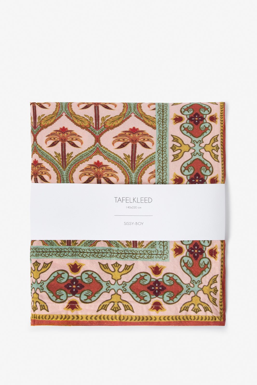 Lichtroze tafelkleed met palmbomen van Sissy-Boy. Het tafelkleed is versierd met een all-over print van palmbomen. Wasadvies: wassen op 40 graden, strijken op middelmatige temperatuur, niet in de droger. Afmetingen: 140 x 220 cm. Materiaal: 100% katoen.
