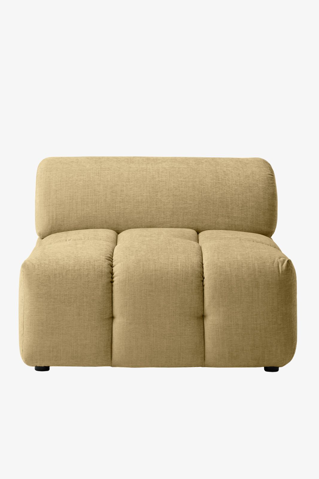 Modulaire bank uit de Marquis serie van Sissy-Boy. De bank bestaat uit een hoek, een hocker en een zitting/stoel. De bank is 100% modulair je kan er dus eindeloos veel opstellingen mee maken. Vul je modulaire bank bijvoorbeeld nog aan met een extra hoek of een zitting. De verbinding tussen de elementen is onzichtbaar weg te klikken, waardoor je de elementen ook vrij in de ruimte kan plaatsen. Eindeloos veel opties dus! Door de doorgestikte kussens heeft de bank de ultieme cozy uitstraling. Een echte bank om op weg te dromen. De stof is gemaakt van polyester. De kleur van de lichtgele bank is Artic Lichen. Het meubel heeft een totale breedte van 186 cm, een totale hoogte van 74 cm en een totale diepte van 186 cm. De zitdiepte is 60 cm en de zithoogte is 44 cm. Wil je meer informatie over deze bank? Lees hier alles over de Marquis.