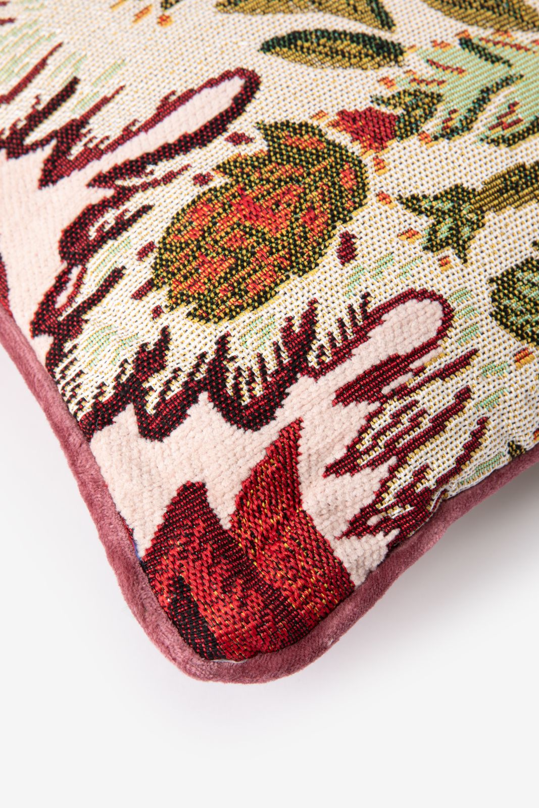 Multicolour kussen met print van Sissy-Boy. Het kussen heeft een rode kleur met een symmetrisch bloemendesign. Afmetingen: 45 cm x 60 cm. Materiaal: 80% polyester, 20% katoen.