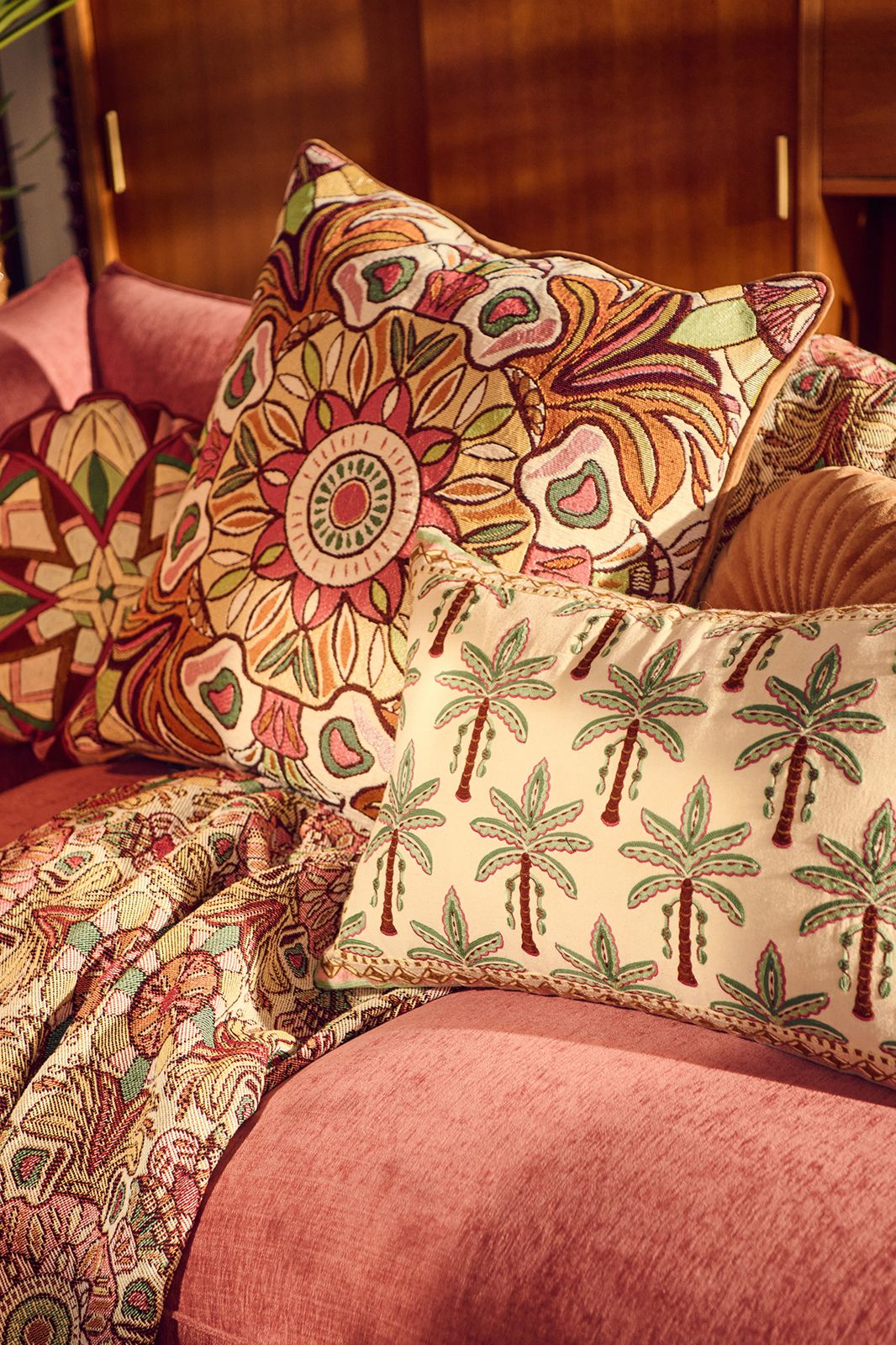 Multicolour kussen met print van Sissy-Boy. Het kussen heeft een multicolour design met een all-over mozaïek print in de kleuren donkerroze, bruin, oranje, groen en lichtroze. Afmetingen: 60 cm x 60 cm. Materiaal: 80% polyester, 20% katoen.
