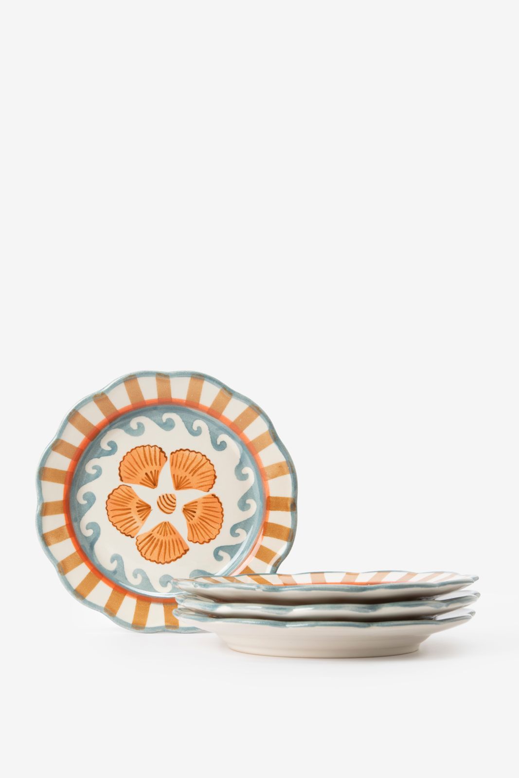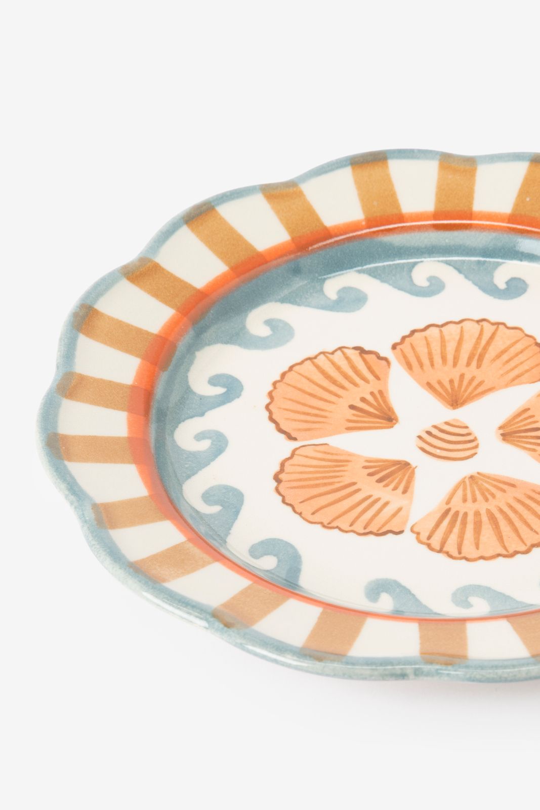Multicolour ontbijtbord met schelpen van Sissy-Boy. Het lichtblauwe ontbijtbord met golven en schelpen in het midden. Dit bord heeft een diameter van 20 cm, is gemaakt van keramiek en is geschikt voor in de vaatwasser. Materiaal: 100% Gres. Afmeting: 20 cm.