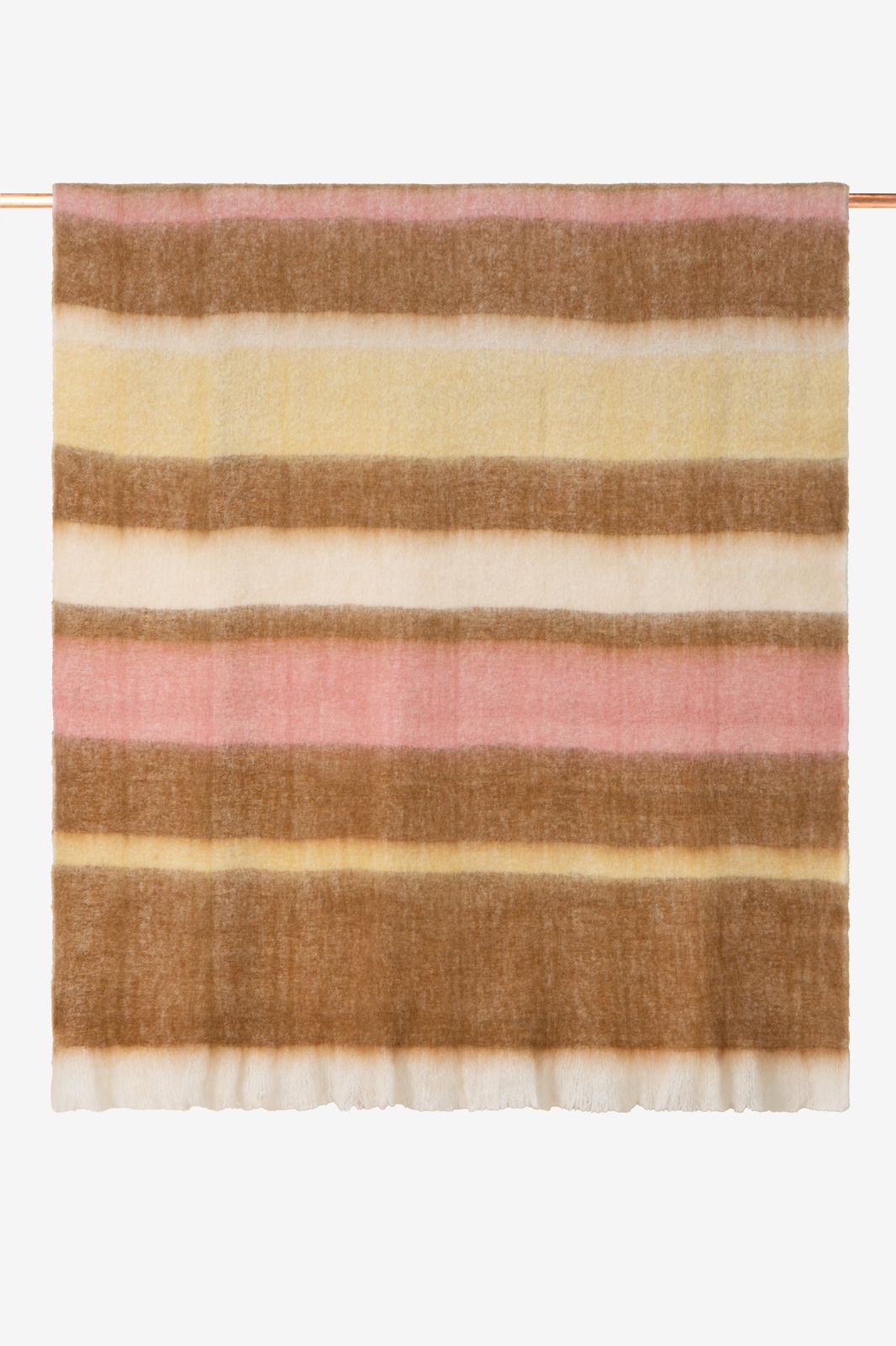 Multicolour sprei met strepen van Sissy-Boy. De sprei heeft een all-over multicolour strepen design met bruine, roze en witte kleurtinten. Wasadvies: apart wassen op 30 graden, niet in de droger, strijken op lage temperatuur, niet bleken en niet stomen. Afmetingen: 130 cm x 180 cm. Materiaal: 30% wol, 55% acryl, 15% nylon.