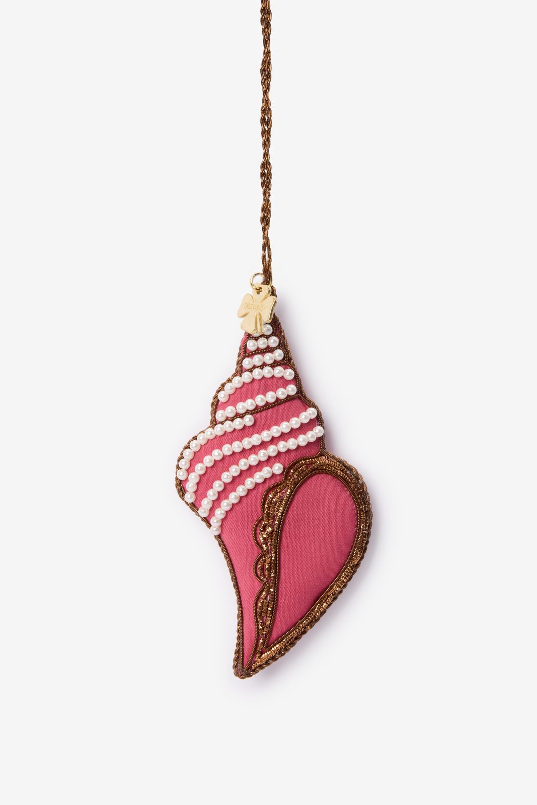 Rode kersthanger met schelp van Sissy-Boy. De hanger heeft een rode kleur met opgestikte witten kralen en een lurex detail. Afmeting: 11 cm. Materiaal: 60% polyol, 22% katoen, 10% lurex, 8% glas.