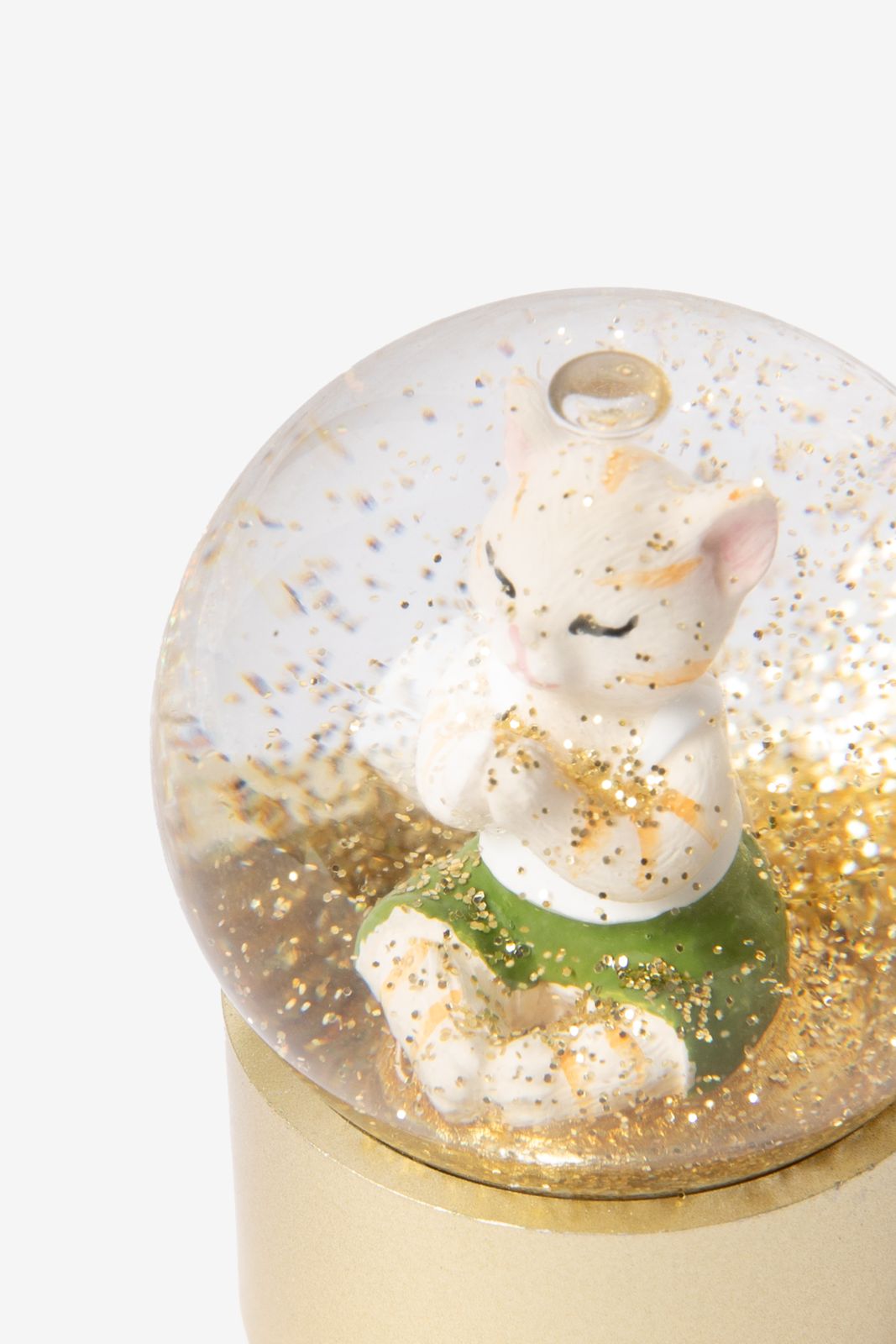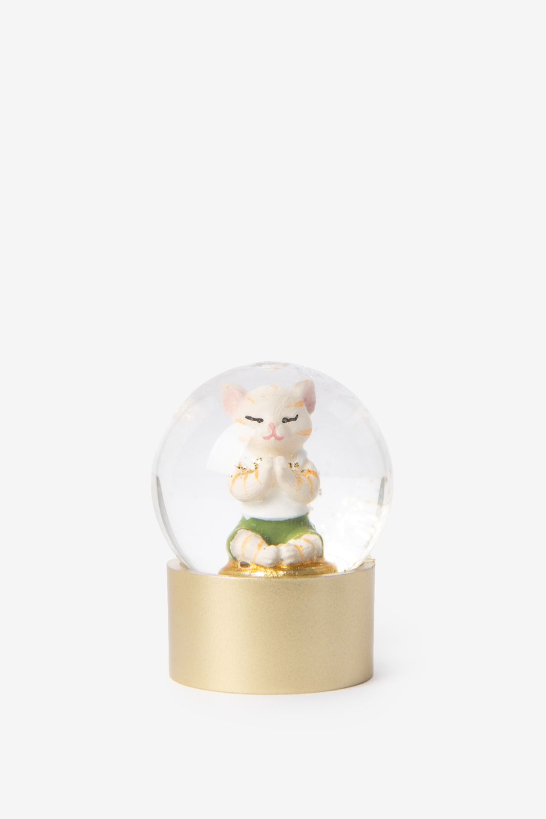 Sneeuwbol met relaxte kat van Sissy-Boy. De sneeuwbol is gevuld met een mediterende kat en heeft een gouden voetje. Met een hoogte van 3,5 cm brengt deze sneeuwbol sfeer in huis. Schud de bol en zie de gouden glitters vallen voor een feestelijk effect!