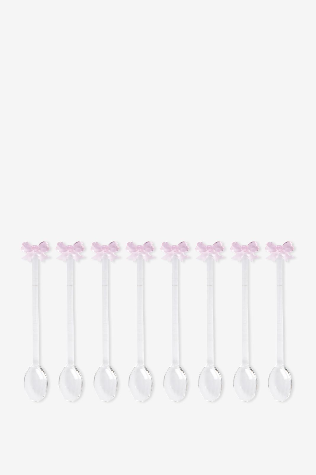 Transparante glazen lepeltjes met strik van Sissy-Boy. De lepels zijn 15 cm hoog en hebben een roze strikje. Let op: online kun je deze roerstaafjes alleen in een set van 8 kopen. Liever één stuk? Kom dan langs in een van onze winkels. Materiaal: 100% glas.