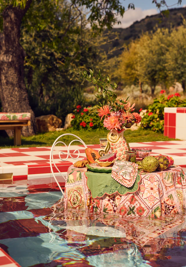 Trails of Treasures is een collectie die ontstaat uit alles wat je in de loop van de tijd verzamelt. Objecten die je tegenkomt en meeneemt, kleuren die doen denken aan warme, zonnige plekken en prints die vertrouwd aanvoelen. Elk product voelt als deel van een reis en komt samen in een interieur dat leeft en steeds persoonlijker wordt.