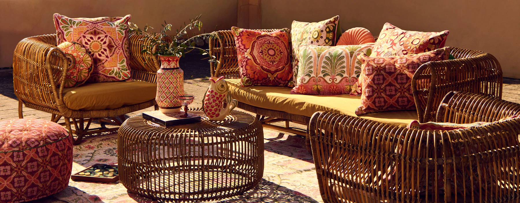 In meubels, servies, textiel en decoratie zie je diezelfde aandacht terug. Geweven materialen, handbeschilderd keramiek en glaswerk, en expressieve details geven elk item karakter. Samen vormen ze een geheel dat leeft en blijft veranderen.
