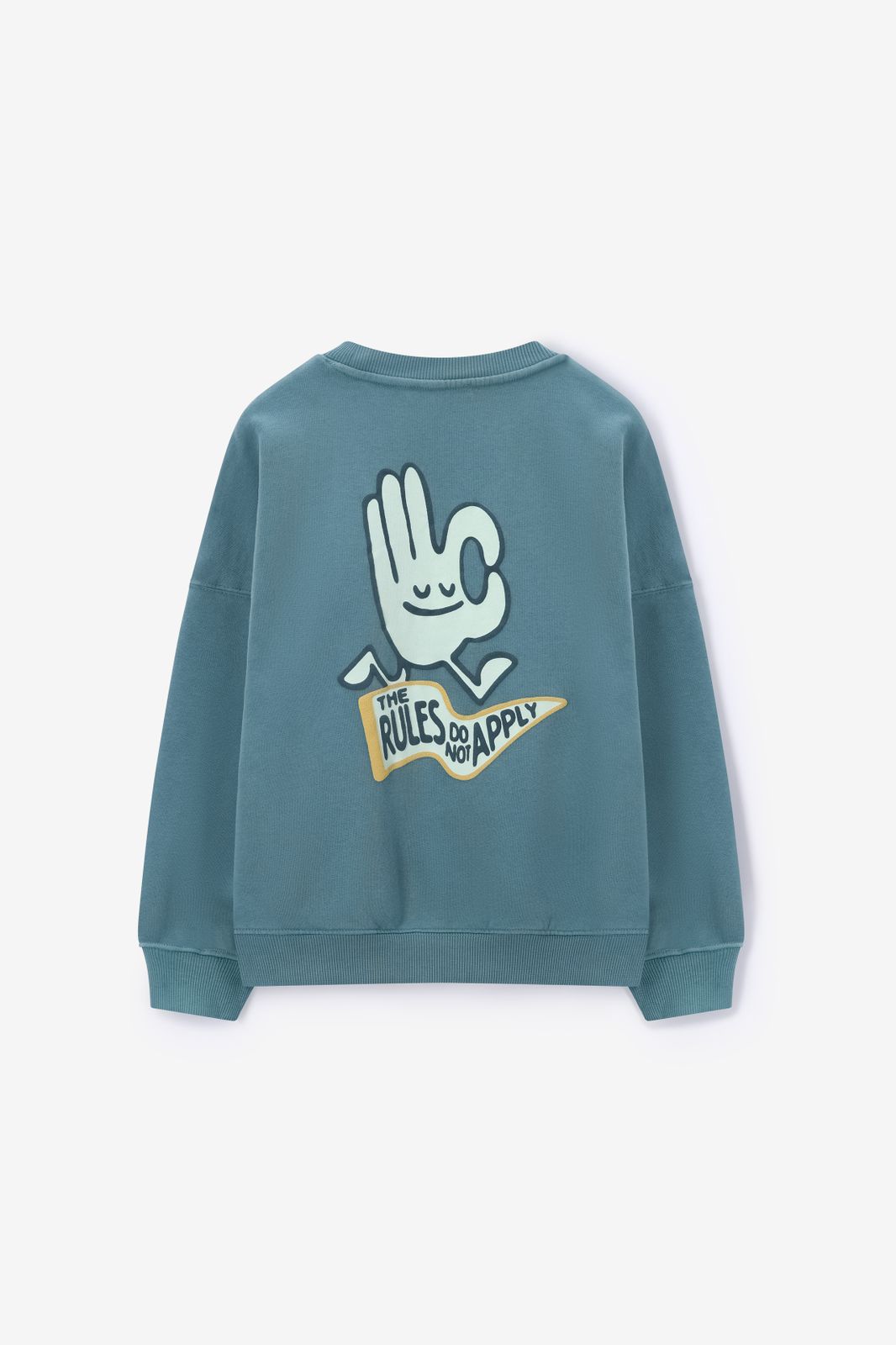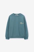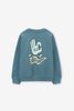 Blauwe crewneck met artwork van Sissy-Boy. De sweater heeft lange mouwen, een ronde halslijn, ribboorden, verlaagde schouders en een relaxed fit. Verder heeft de sweater een lichtblauw grafisch artwork op de borst en achterzijde. Materiaal: 100% katoen.