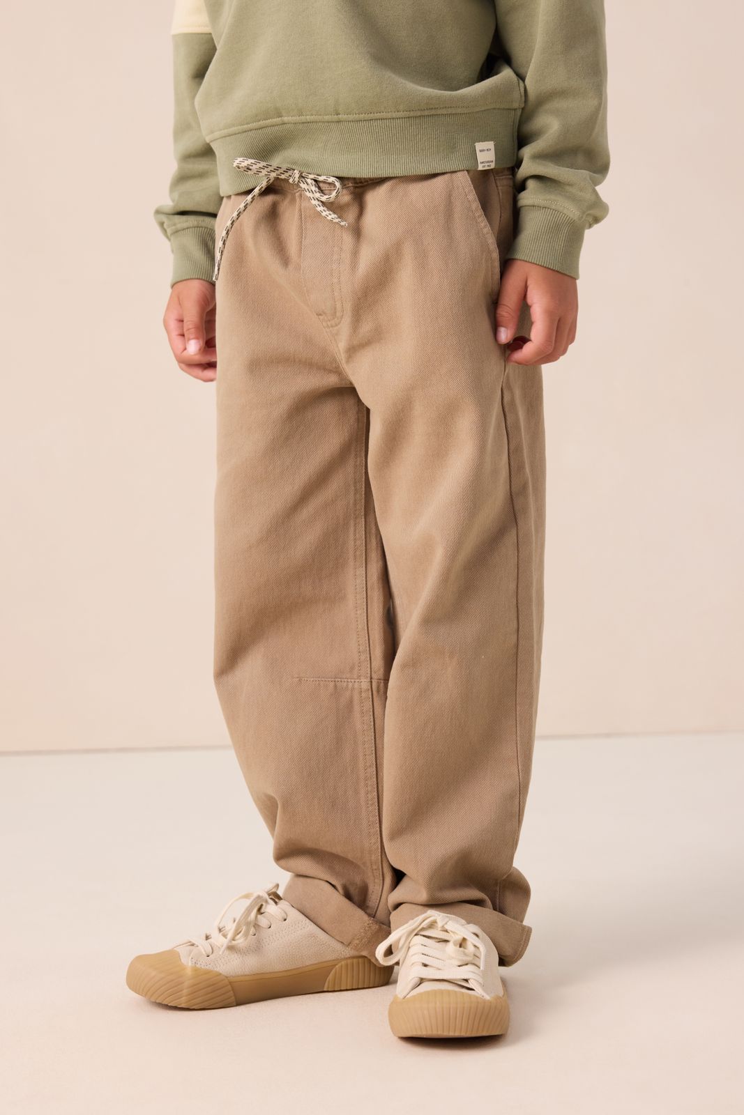Bruine pull on Paxen broek met aantrekkoorden van Sissy-Boy. De broek heeft een elastische band met aantrekkoorden, twee steekzakken aan de voorzijde en twee opgestikte zakken aan de achterzijde. Materiaal: 100% katoen