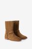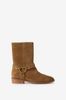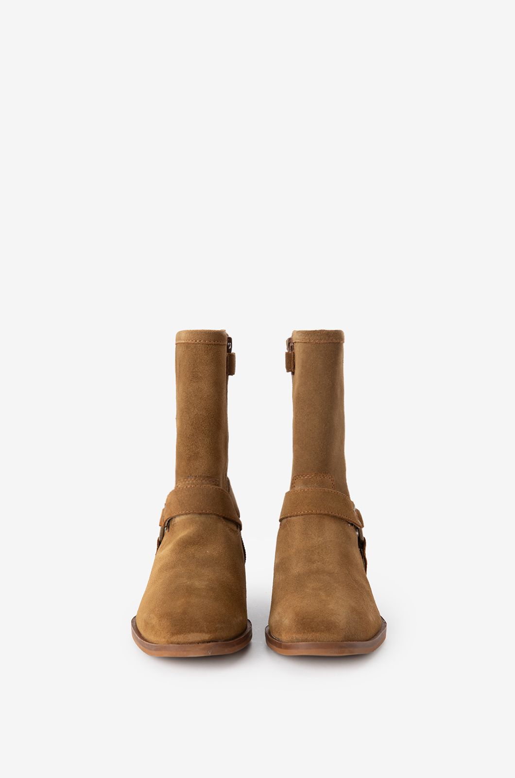 Bruine suède laarzen met hartjes buckle van Sissy-Boy. De laars heeft een ronde neus, een lage hak en is half hoog. Daarnaast heeft het een cognac bruine kleur, suède kwaliteit en een hartjes buckle met studs aan de zijkant. Materiaal: 100% suède.