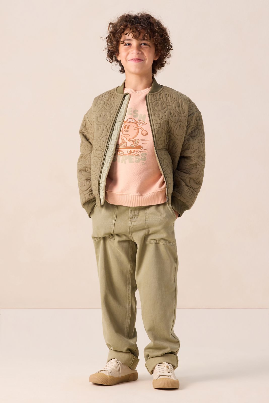 Donkergroen bomber jack met smileys van Sissy-Boy. Het jack heeft lange mouwen, een hoge hals, steekzakken en een ritssluiting. Daarnaast heeft het een donkergroene kleur met all-over smileys in de stof verwerkt. Materiaal: 85% katoen, 15% linnen.