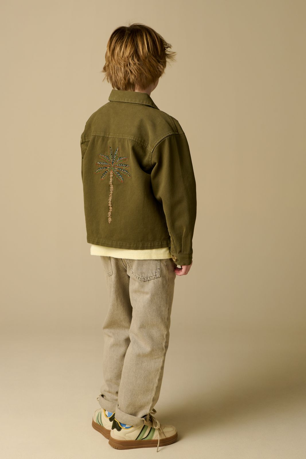 Donkergroen jack met embroidery van Sissy-Boy. Het jack heeft lange mouwen, een kraag en een knoopsluiting. Verder heeft het jack een donkergroene kleur met een grote palmboom embroidery op de achterzijde. Materiaal: 100% katoen.
