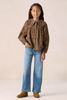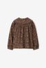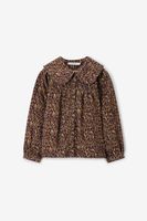 Donkergroene blouse met leopard print. De blouse heeft lange pofmouwen, een knoopsluiting, een oversized peter pan kraag met een ruffle en een regular fit. Verder is de blouse gemaakt van een corduroy rib kwaliteit. Materiaal: 100% katoen.