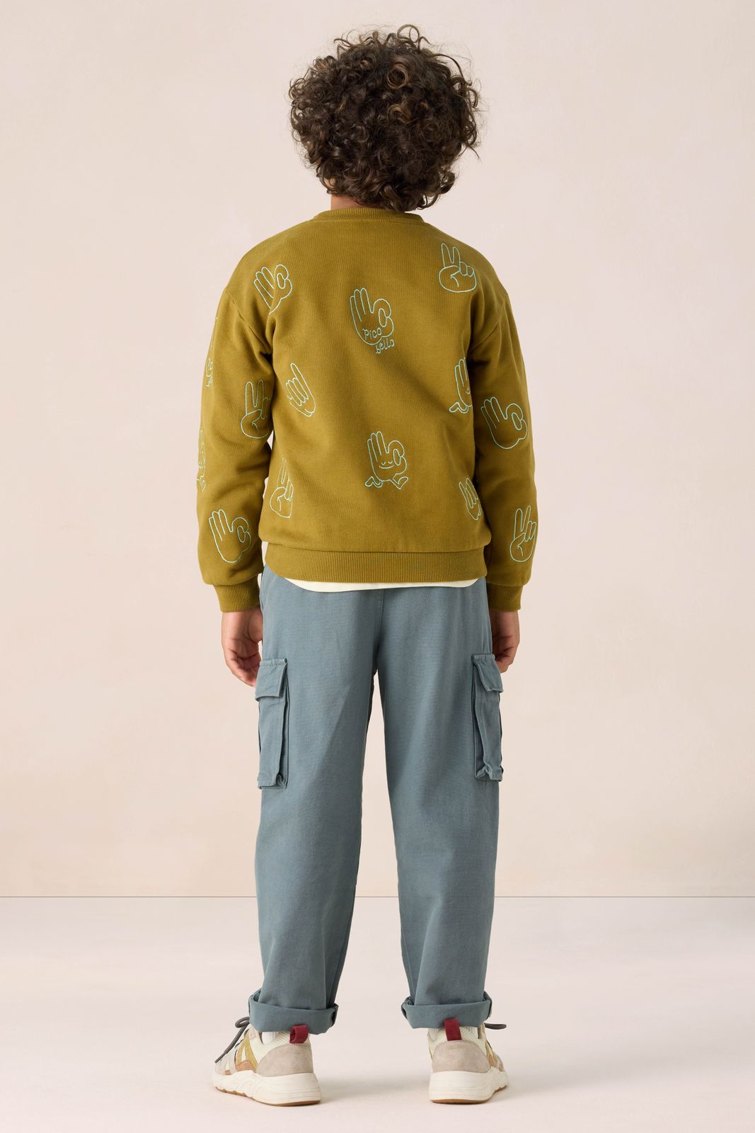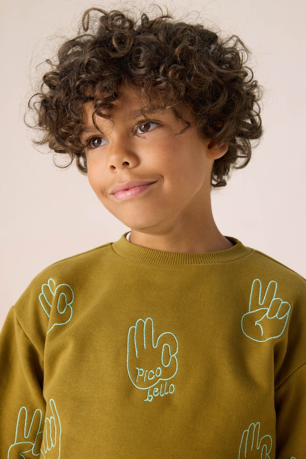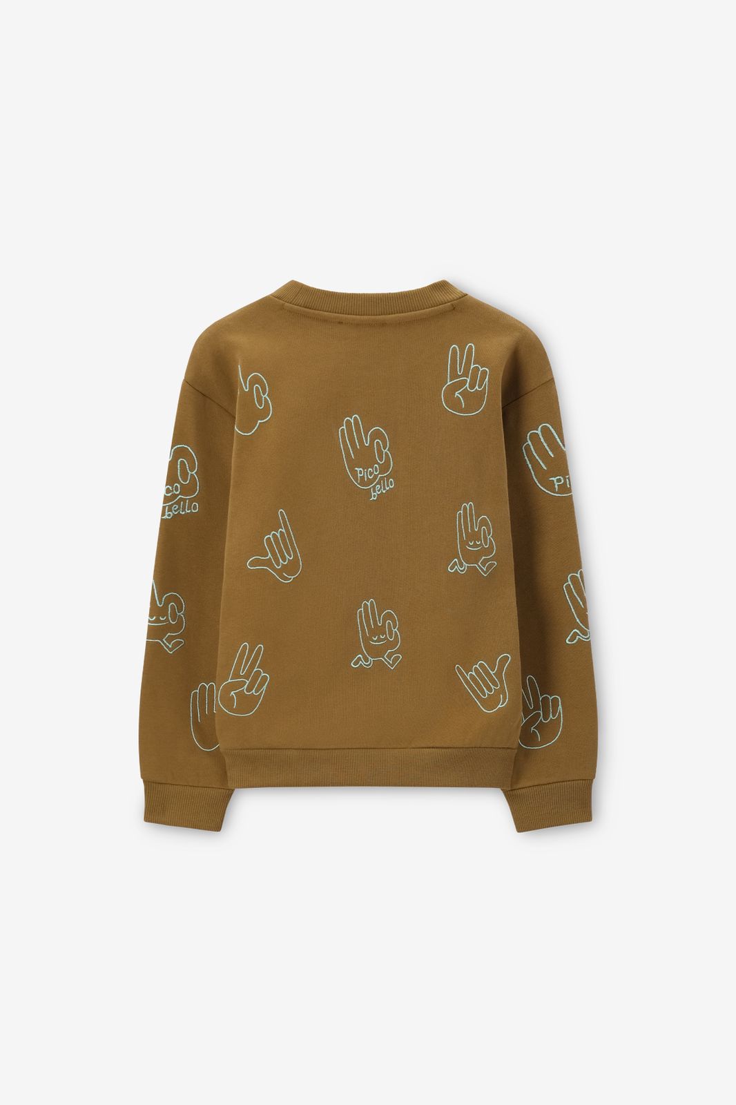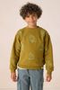 Donkergroene sweater met handjes print van Sissy-Boy. De sweater heeft lange mouwen, een ronde hals, ribboorden, verlaagde schouders en een relaxed fit. Verder heeft de sweater een donkergroene kleur en een all-over opgestikte blauwe handjes. Materiaal: 100% katoen.