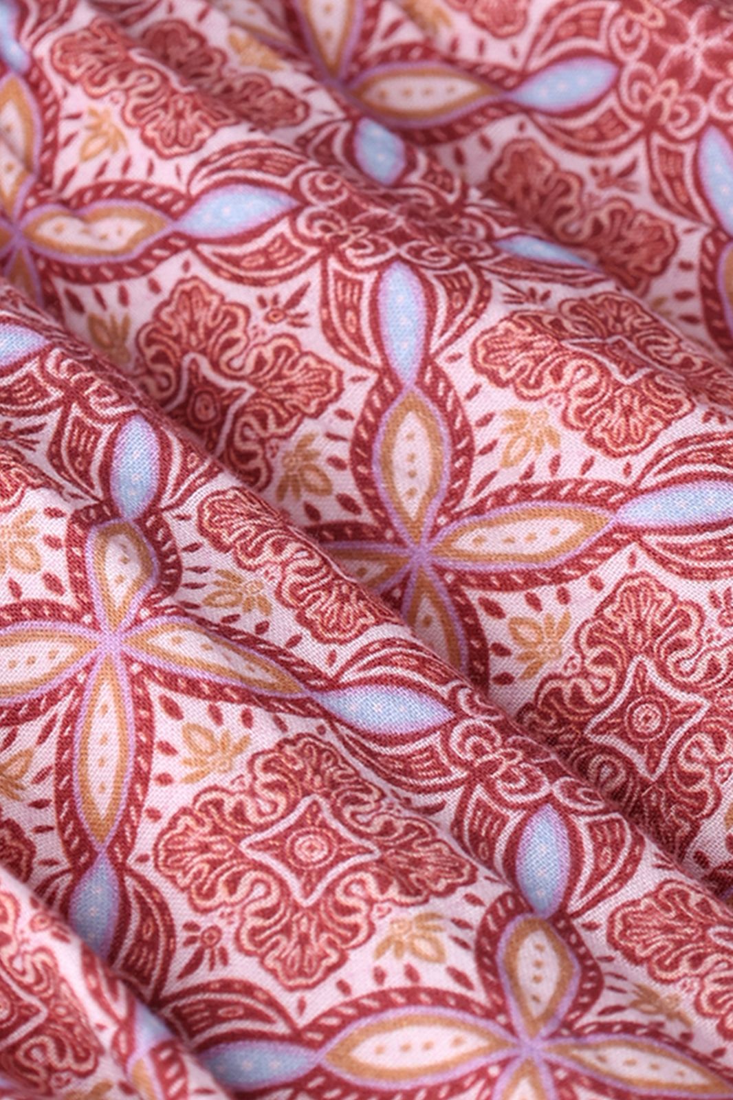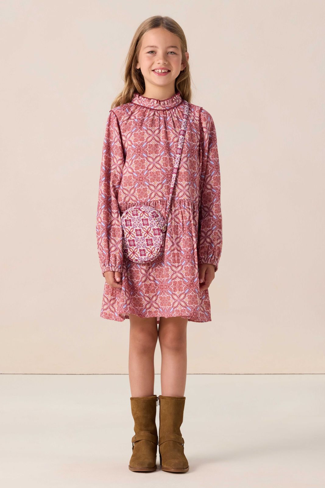 Donkerrode jurk met print van Sissy-Boy. De jurk heeft lange mouwen, een hoge halslijn, een korte a-lijn model en een knoopsluiting op de achterzijde. Daarnaast heeft het artikel een donkerrode kleur met een bohemian all-over print. Materiaal: 100% katoen.