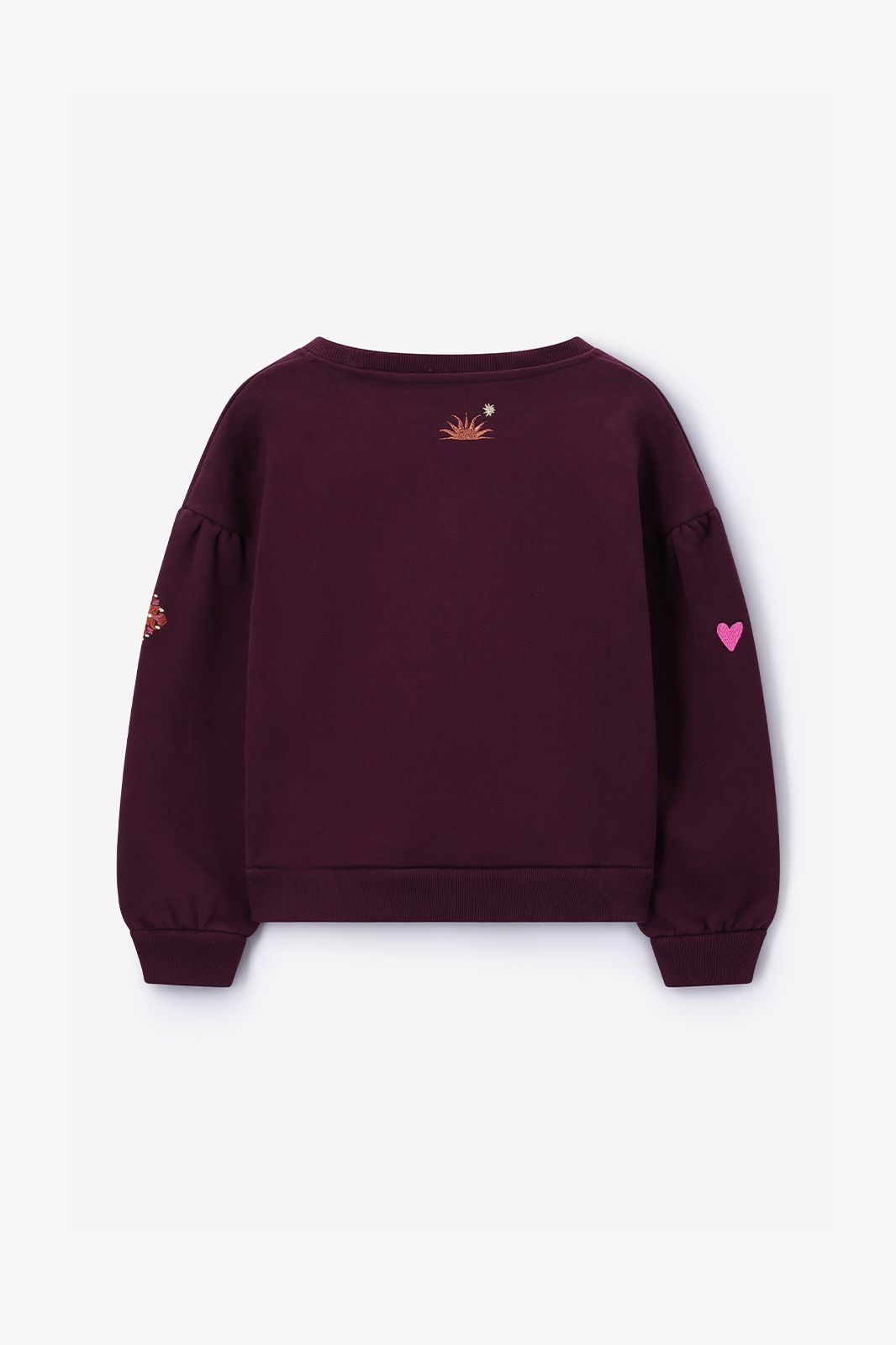 Donkerrode sweater met embroidery van Sissy-Boy. De sweater heeft lange pofmouwen, een ronde hals, ribboorden, verlaagde schouders en een relaxed fit. Verder heeft de trui een donkerrode kleur en roze opgestikte details. Materiaal: 100% katoen.