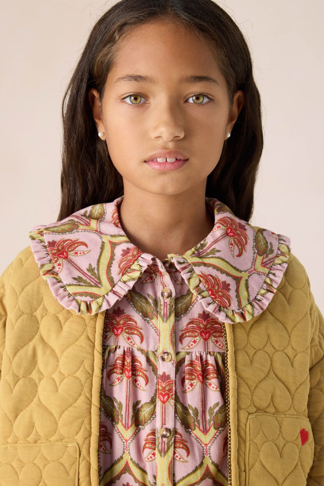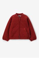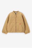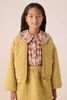 Gele quilted jas met hartjes van Sissy-Boy. De jas heeft lange pofmouwen, een ritssluiting, twee opgestikte zakken, een opstaande kraag en een elastische tailleband. Verder is de jas gemaakt van een gewatteerde kwaliteit stof en heeft het een all-over hartjespatroon met een rood hartjesborduursel op één van de opgestikte zakken. Materiaal: 100% katoen.