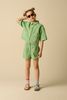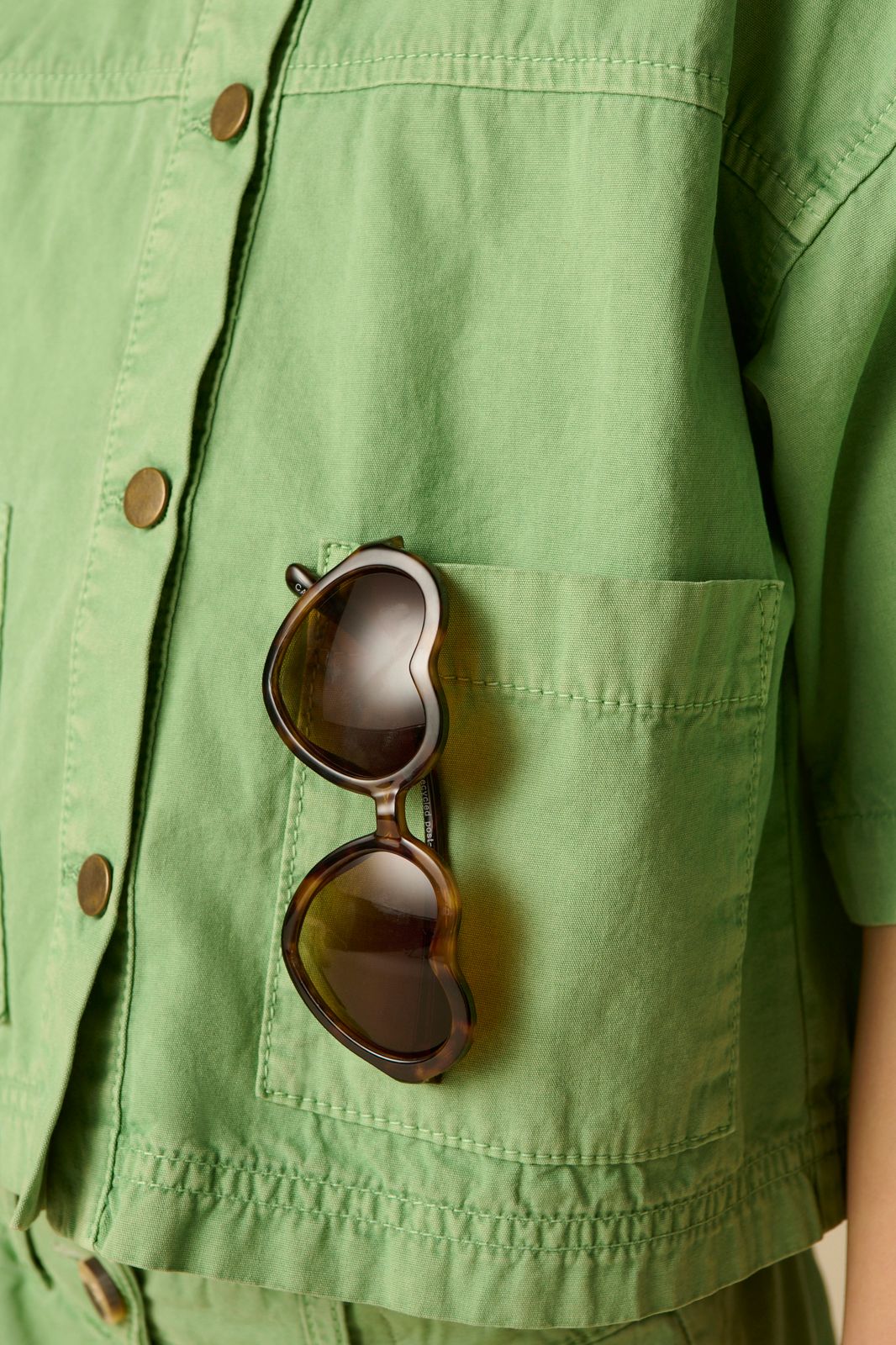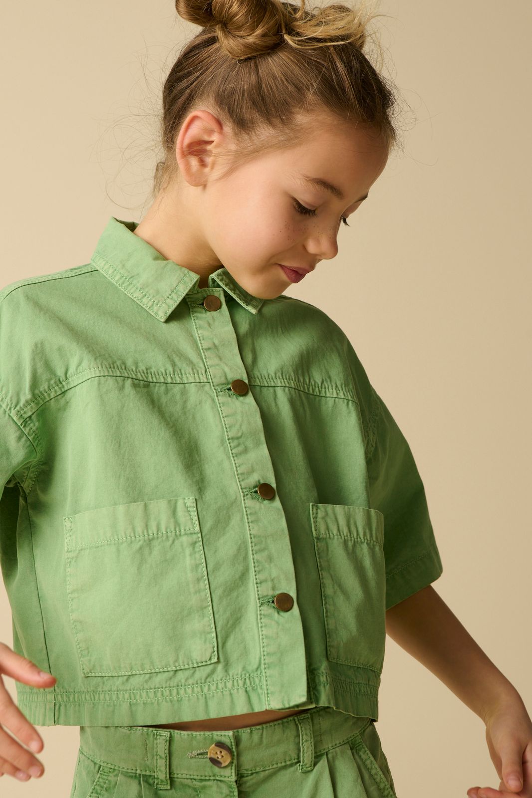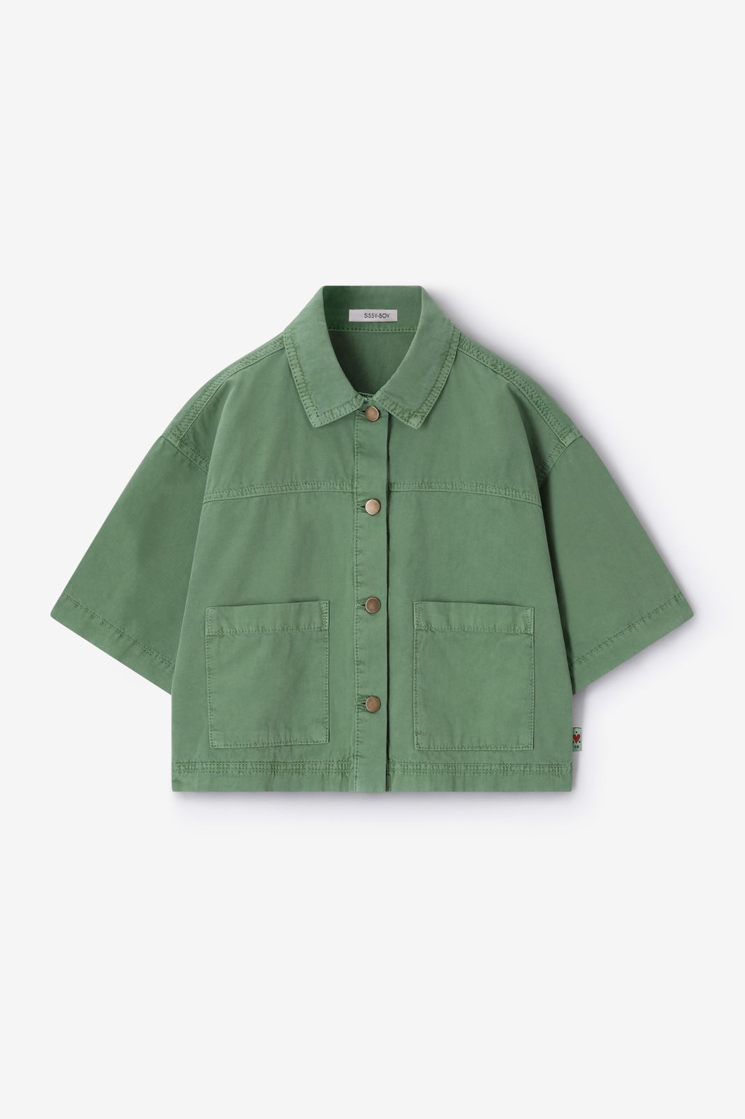 Groen jack met opgestikte zakken van Sissy-Boy. Het jack heeft korte mouwen, een kraag en een knoopsluiting aan de voorzijde. Verder heeft het jack een groene kleur met twee opgestikte zakken aan de voorzijde. Materiaal: 100% katoen.