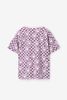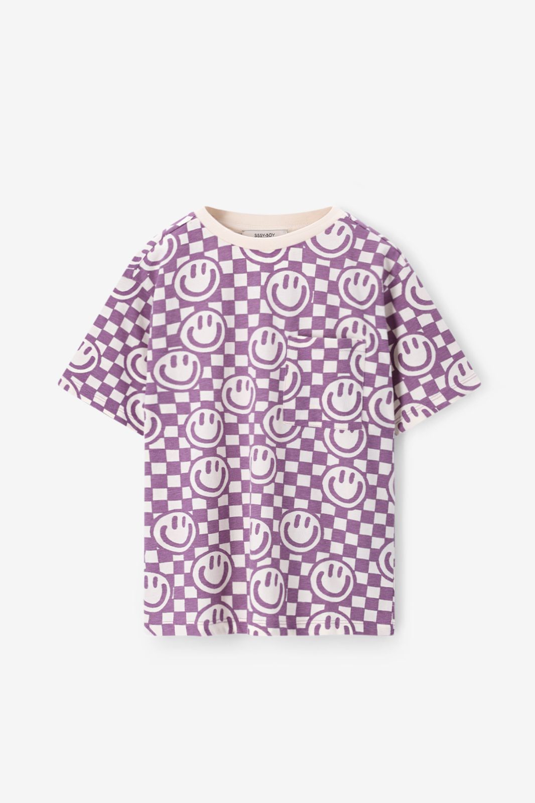 Paars T-shirt met smileys van Sissy-Boy. Het T-shirt heeft korte mouwen, een hoge ronde halslijn en een relaxed fit. Daarnaast heeft het een paarse kleur met een all-over witte block print met smileys. Materiaal: 100% katoen.