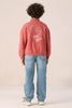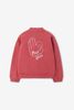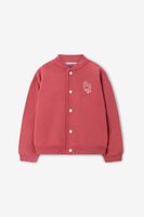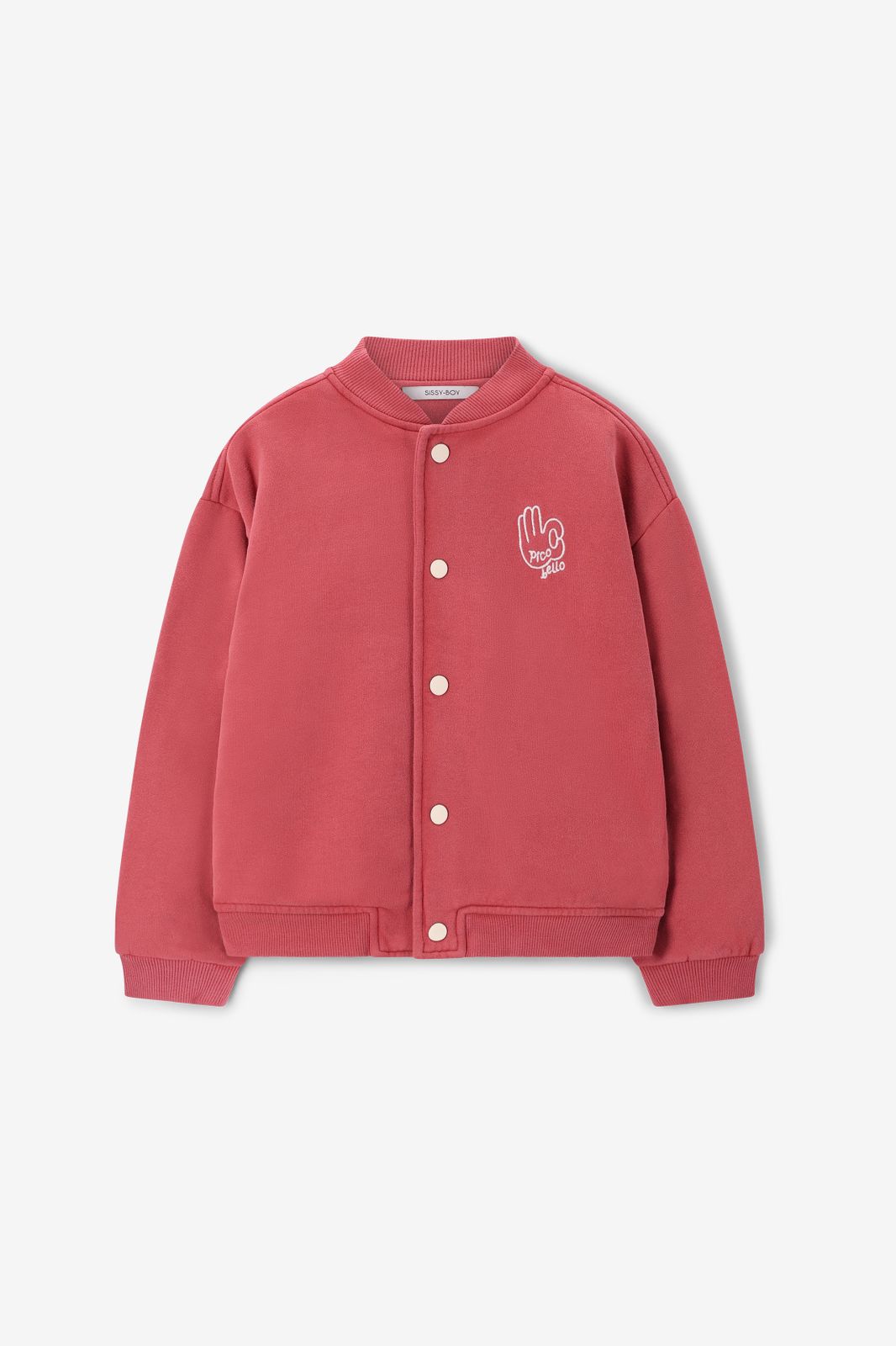 Rood bomber jack met artwork van Sissy-Boy. Het jack heeft lange mouwen, een hoge halslijn, ribboorden, een drukknoopsluiting, verlaagde schouders en een relaxed fit. Daarnaast heeft het een rode kleur met een wit artwork op de voor-en achterzijde. Materiaal: 100% katoen.